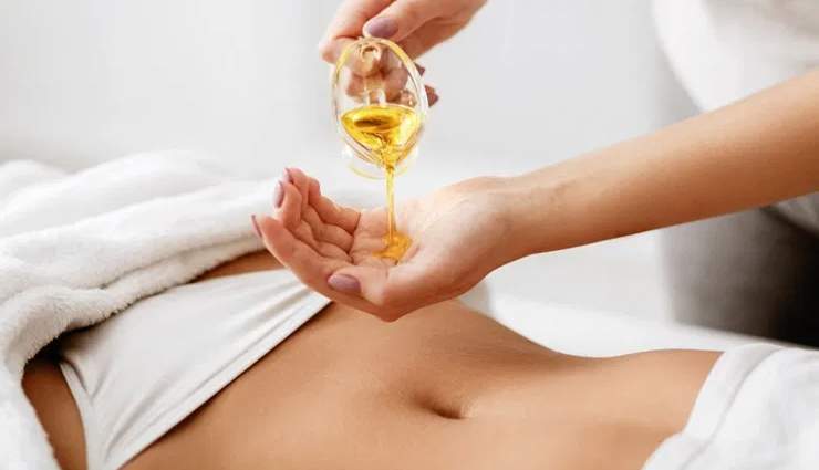 - Masati usor zona din jurul buricului cu miscari circulare timp de cateva minute. Acest lucru ajuta uleiul sa fie absorbit in piele si sporeste eficacitatea acestuia.