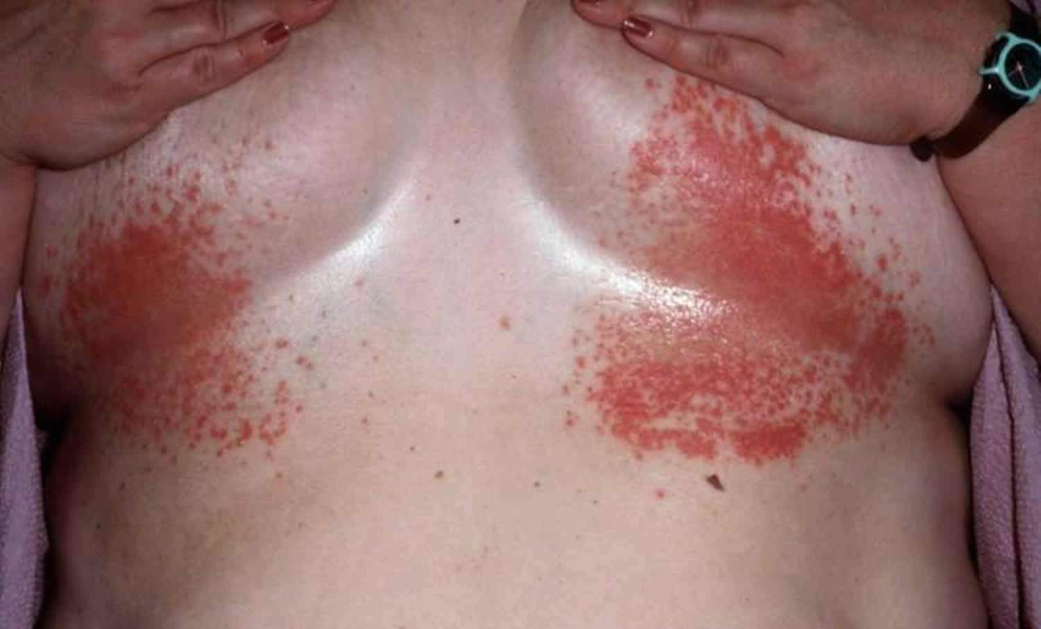 Transpiratie si eruptii cutanate sub sani: simptome si cauze